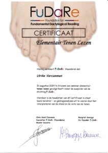 Ik volgde met succes de opleiding Elementair Tenen Lezen bij FuDaRe Vlaanderen.